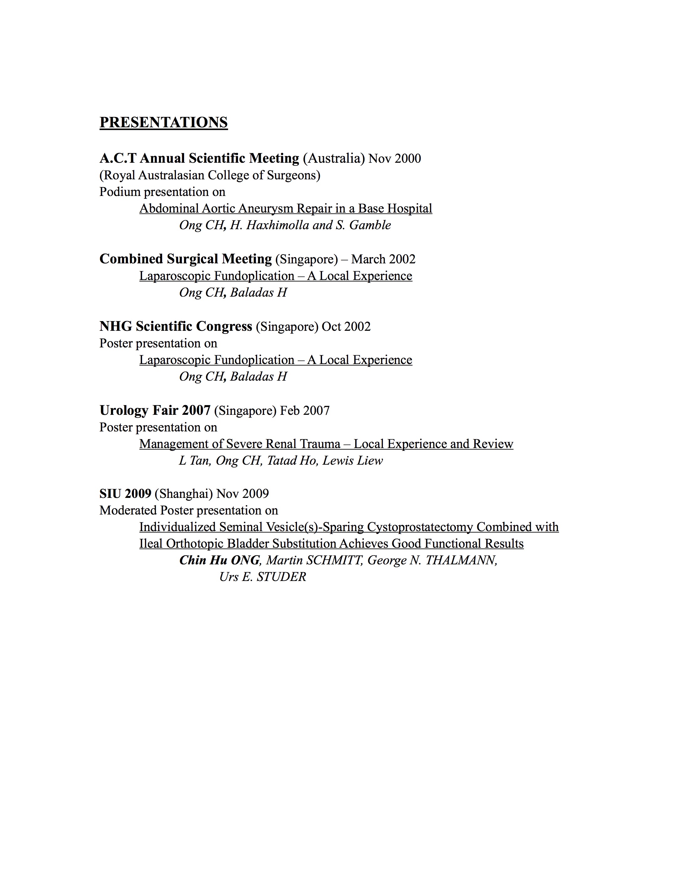 Thereafter, he further his Advanced Surgical Urology training at Alexandra Hospital (AH) and National University Hospital (NUH), Singapore, completing with distinction in 2008. He won the European Board of Urology (EBU) book prize and College of Surgeons' Gold Medal in 2008 for his achievement.